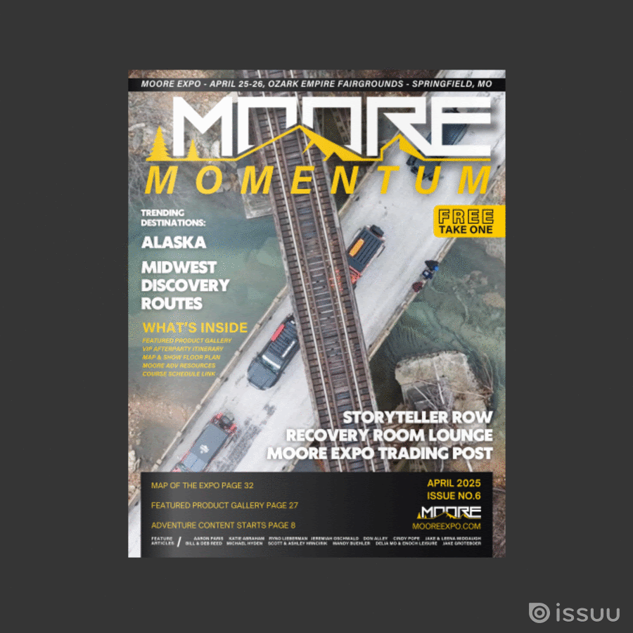 Flip through the 2025 MOORE Momentum magazine – stories, builds, and highlights from our Midwest adventure family.